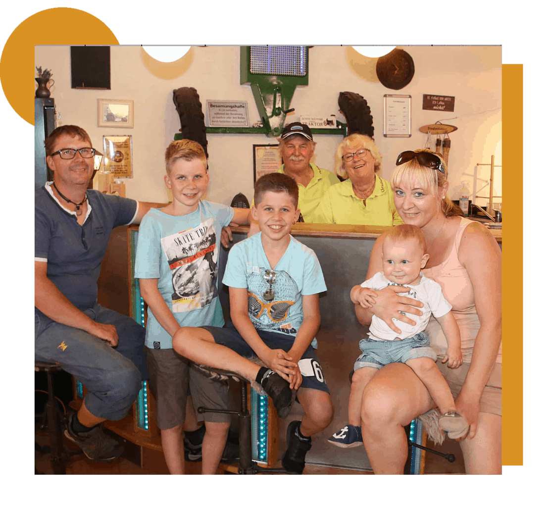 Unsere Treckerstube ist eines von nur zwei zertifizierten Cafés im Saarland. Unsere hausgemachten Kuchen sind in der Region berühmt. Wir bieten auch eine offene Grillhütte mit heißem Stein und Grillrost im Herbst an (bei Anfrage sogar im Winter!).